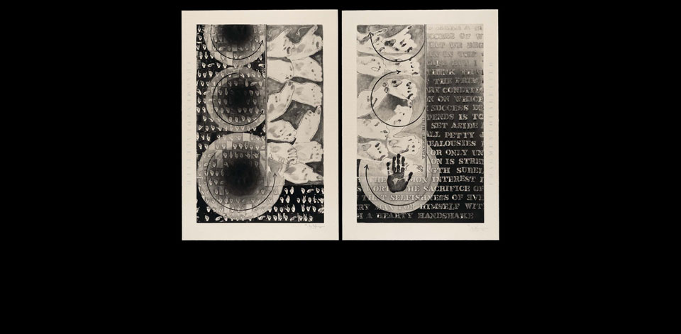 Above: Jasper Johns, Fragment of a Letter, 2010. Printer and Publisher: Universal Limited Art Editions, Inc., New York. Etching and aquatint on two sheets of handmade paper. Lee M. Friedman Fund.